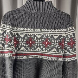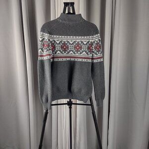 Izod Mens 1/4 Zip Gray Ski Lodge Fair Isle Nordic Design Pullover Sweater Size S