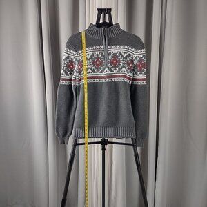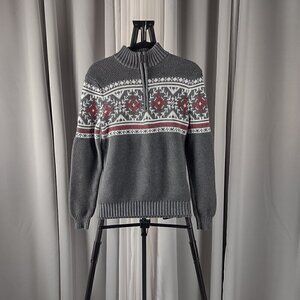 Izod Mens 1/4 Zip Cotton Blend Gray Ski Lodge Fair Isle Nordic Design Pullover Sweater Size S