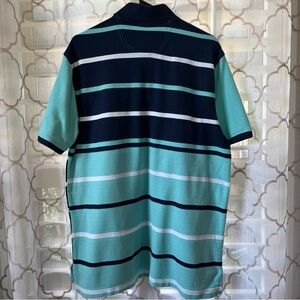 Izod Men's Advantage Polo Shirt. Green Navy White Striped. Short Sleeves. 100%Cotton