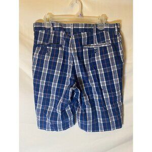 Izod Mens Bermuda Shorts waist Size 33 Navy Plaid Pattern Pockets Preppy