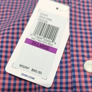 Classic burgundy checkered shirt by Izod. Ideal for casual outings. Features button-down collar and cuffs. This shirt is new with tags. amazing quality. original price tag of $60. very very nice shirt. ready to go