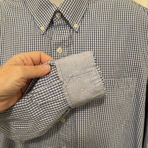 Izod Men's Button-Down Long Sleeve Shirt Blue Gingham Size XXL Pocket Flip Cuff