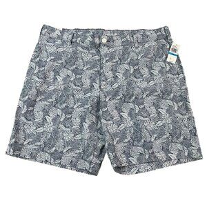 Izod Mens Chambray Classic Fit Shorts 36 Waist 8 Inseam Tropical Leaf Design