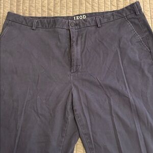 Sleek dark blue chinos by Izod. Ideal for casual or formal wear. Comfortable fit and stylish design. 40x30