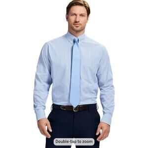 The Izod Men's Dress Shirt in blue is a classic and versatile addition to any man's wardrobe. This regular fit shirt features a check pattern, long sleeves, a collared neckline, and button closure. Made from a comfortable cotton blend material, this shirt is perfect for formal occasions and offers a wrinkle-free and stretchy design for added comfort. With a button-down collar style and size medium (15-15.5 neck), this dress shirt exudes a timeless charm that is suitable for all seasons.