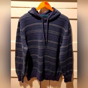 Izod Men's Fair Isle Hoodie Navy Knit Sweater | Long Sleeve | 100% Cotton | XXL