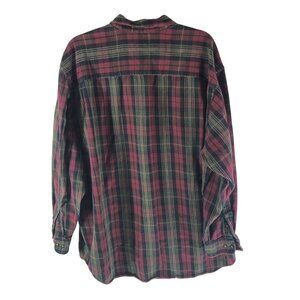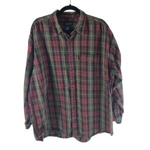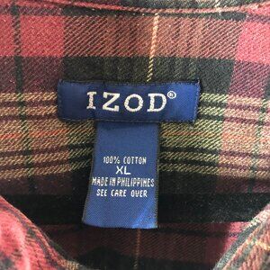 Izod Mens Flannel Shirt Button Down Chest Pocket Cotton Plaid Red Beige XL