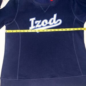 Izod Mens Fleece Sweatshirt Large Navy Blue Logo Pull Over Crewneck Preppy