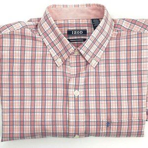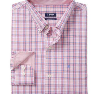 Izod Mens Flip Cuff Button Down Size S Premium Shirt Pink Blue Plaid Preppy