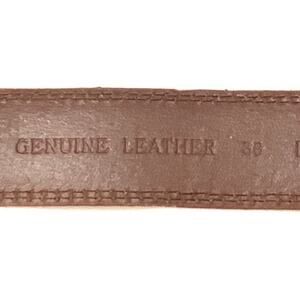Izod Mens Genuine Leather Double Stitched Brown Belt Silver Tone Buckle Size 38