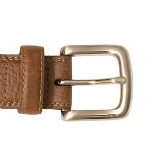 - This Double Stitched Brown Belt has a Silver Tone Buckle