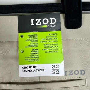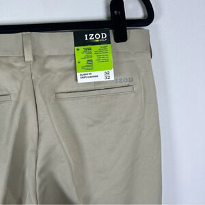 Izod Mens Golf Pants Khaki Beige Classic Fit Flat Front Chino Business 32x32 NWT