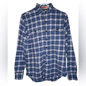 Izod Mens Highland Twill Flannel Shirt Long Sleeve Men’s Size Small Blue Plaid