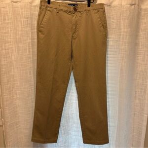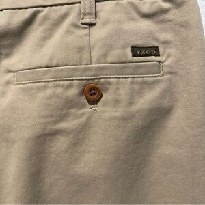 Izod Mens Khaki Pants Size 32x30 Straight Classic Flat Front Chino Trouser Tan
