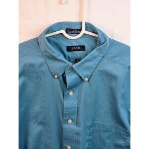 Izod Men's Large 17 34/35 Teal Regular Fit Long Sleeve Button Up Shirt