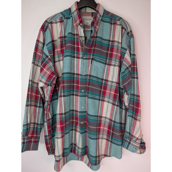 Izod Men's Large Button Down Collar Flannel Plaid Long Sleeve Shirt EUC
