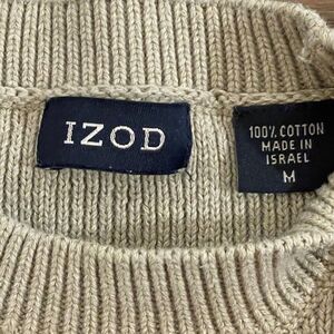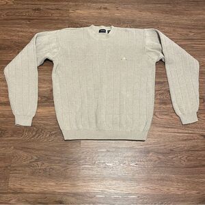 Izod Mens Long Sleeve Crew Neck Textured Sweater 100% Cotton Beige Size Medium