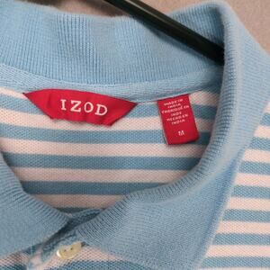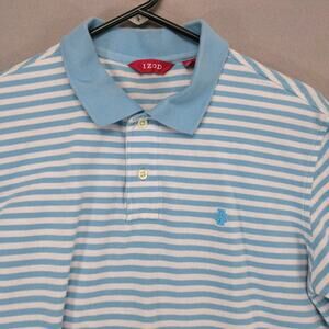 Izod Men's M Light Blue Striped Cotton Polo Shirt