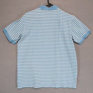 Izod Men's M Light Blue Striped Cotton Polo Shirt, Logo, Golf Preppy Classic Y2K