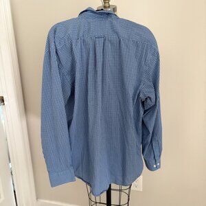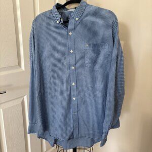 Izod Men's Non-Iron Stretch Blue & White Plaid Long Sleeve Button Down Shirt XL