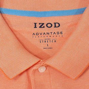 Izod Men's Orange Collared Natural Stretch Short Sleeve Polo Shirt Size L