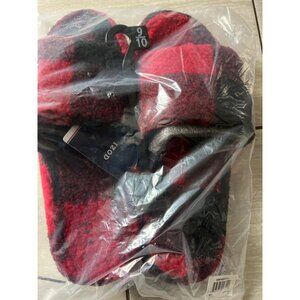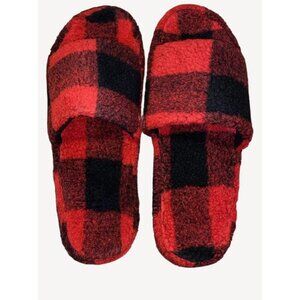Izod Mens Plaid Slippers Size 9/10 Red & Black Fleece Lined