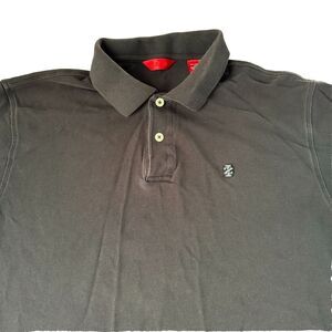 Izod Men’s Polo Shirt Collard Black 1/4 Button Up Short Sleeved Size Large