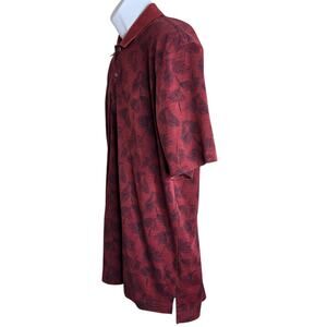 Izod Mens Polo Shirt Large Tropical Print Palm Leaves Maroon Vacation Golf