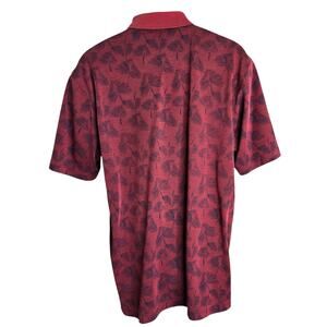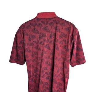 Izod Mens Polo Shirt Large Tropical Print Palm Leaves Maroon Black Vacation Golf