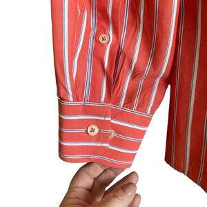 Izod Mens Preppy Shirt L Coral Stripe Button Down Office Classic Travel Resort