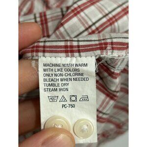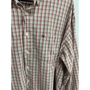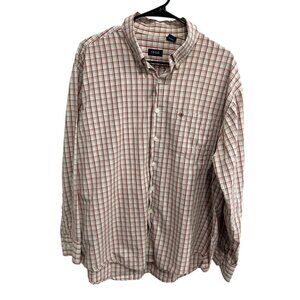 Izod Mens Red & White Plaid Button-Down Shirt XL 100% Cotton Classic Fit