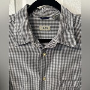 Izod Mens Shirt Large Short Sleeve Black White Checkered Button Up Casual