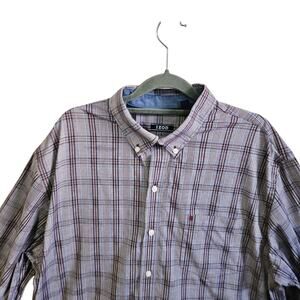 Izod Mens Size XL Long Sleeve Button Down Shirt Blue Gray Houndstooth Grid Plaid