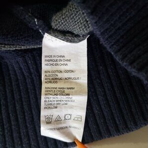 A versatile medium-weight sweater offering a polished look with a navy, gray, and olive green striped pattern. Ideal for layering in cooler weather.