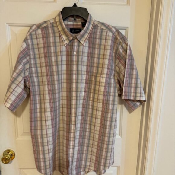 Izod Men's Vintage Plaid Short-Sleeve Button-Down Shirt Tan Sz L