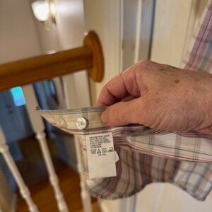 This vintage Izod plaid shirt is a classic with multiple colors. The shirt features a chest pocket and is machine washable.