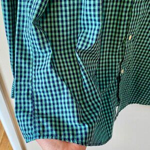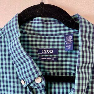 Izod Men's XL Classic Fit Shirt Long sleeve Button down Blue Green Check Cotton