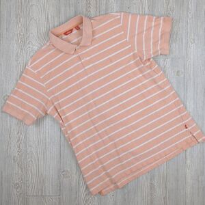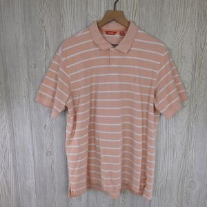 Izod Men’s XL Coral Pink White Striped Short Sleeve Polo Shirt