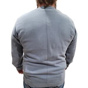 Izod men’s oversized cotton knit sweater in size XL. Cornflower blue with neutral undertones, embroidered chest logo, and IZOD hem tag. Features thick ribbed cuffs and waistband, ribbed V-neck, soft 100% cotton knit, and roomy oversized fit for casual comfort. Timeless grandpa-inspired style, perfect for layering or capsule wardrobe basics. Excellent pre-owned condition, no visible flaws.