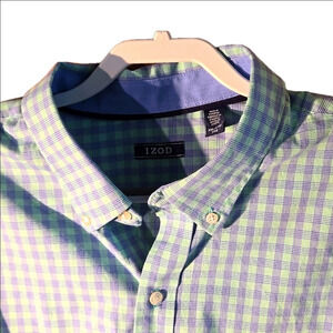 Izod Men's size XXL Lavender & Light Teal Gingham Button Down Long Sleeve Shirt