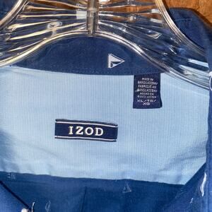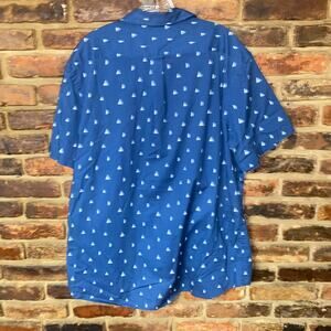 Izod Navy Blue Sailboat Print Short Sleeve Button Down Shirt Men's Size XL