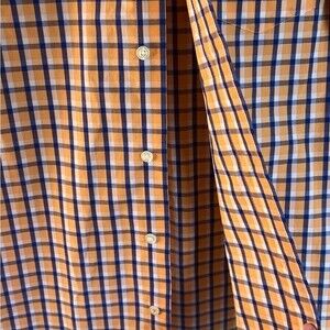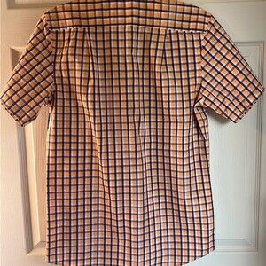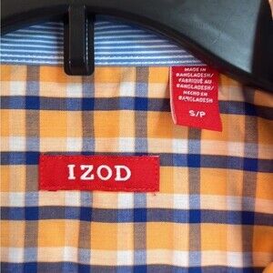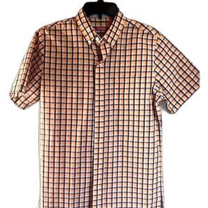 Izod Orange Blue Plaid Short Sleeve Casual Button Front Shirt Size S/P