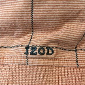 This Izod polo shirt in a vibrant orange hue showcases a timeless geometric pattern, ideal for casual occasions. Crafted from soft cotton, it combines comfort with a classic polo style.