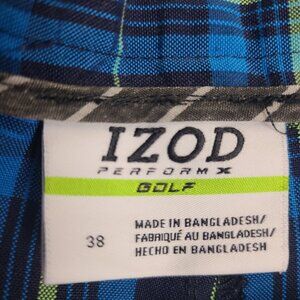 Izod Perform Golf Shorts Plaid Blue Golf Men's Size 38 Bermuda Shorts