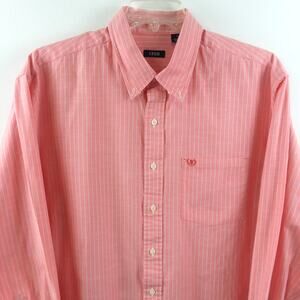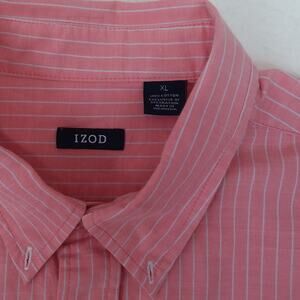 Izod Pink Stripe Long Sleeve Shirt Mens XL 100% Cotton Gorpcore Work Casual