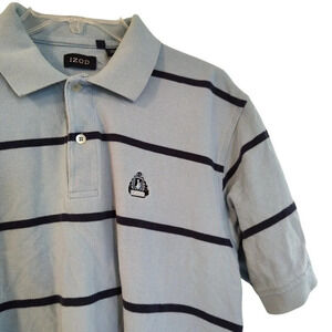 Izod Polo Shirt Collared Golf Men Size M Blue Stripe Short Sleeve FLAWS