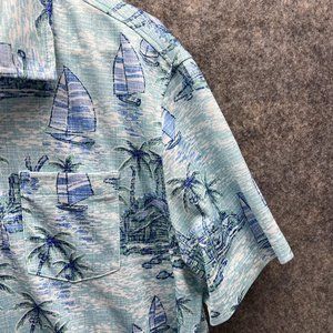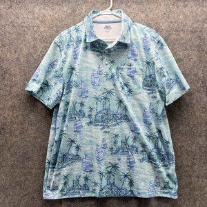 Izod Polo Shirt Men Large Blue Saltwater Relaxed Classics Fit Sail Boat Stretch