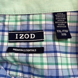 Izod Premium Essentials Plaid Button Down Shirt Blue Teal Size 2XL