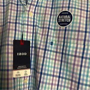 Izod Purple Blue Check Plaid Long Sleeve Collared Button Down Shirt NEW