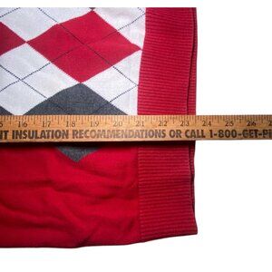 Izod Red Argyle Cotton V-Neck Sweater Preppy Academia Size L